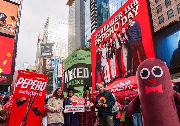 [문화투데이 구재숙 기자] 롯데웰푸드는 11일(현지시간) 빼빼로데이를 기념해 미국 뉴욕 타임스스퀘어 파더 더피 스퀘어에서 '웰컴 투 K스위트 홀리데이' 행사를 성황리에 열었다고 12일 밝혔다.