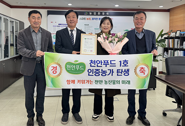 이명열 농업환경국장은 "천안푸드 인증은 단순한 품질마크가 아니라 천안 농산물이 가진 신뢰·안전·지역 순환의 약속을 상징한다"며 "앞으로 더 많은 농가가 인증에 참여해 천안푸드가 지역을 대표하는 로컬브랜드로 자리 잡도록 하겠다"고 밝혔다.