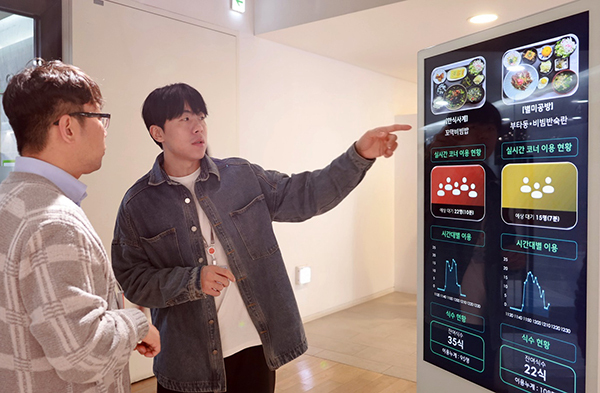 'AI 피플카운팅'은 구내식당에 설치된 카메라와 AI 장비가 이용자 수를 실시간으로 파악하고 체류 시간을 분석해 구역별 혼잡도와 예상 대기시간을 고객에게 제공하는 기술이다.