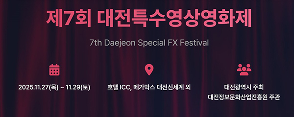 [문화투데이 장은영 기자] 대전시와 대전정보문화산업진흥원은 오는 27일부터 3일간 호텔ICC, 신세계 메가박스 등에서 '제7회 대전특수영상영화제'를 연다고 13일 밝혔다.