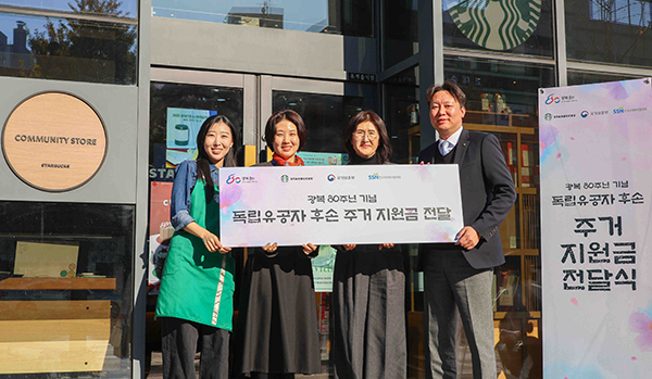 스타벅스는 순국선열의 날을 앞둔 지난 14일 스타벅스 독립문역점에서 열린 전달식에서 한국사회복지협의회를 통해 생계가 어려운 독립유공자 후손에게 기부금을 전했다.
