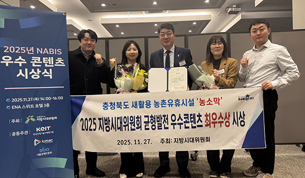 [문화투데이 황재연 기자] 충북도는 새활용 농촌유휴시설인 '농소막'이 지방시대위원회 주최 'NABIS(균형발전종합정보시스템) 균형발전 우수 콘텐츠' 시상식에서 최우수상인 지방시대위원장상을 받았다고 27일 밝혔다.