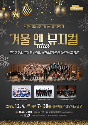 오는 4일 청주예술의전당 대공연장에서 청주시립합창단 제84회 정기연주회 '겨울 엔(and) 뮤지컬'이 열린다.