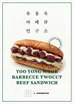 '유용욱 바베큐 투컷 비프 샌드위치'는 두툼한 로스트 비프 큐브와 불향을 살린 그릴드 비프가 조화를 이루며 하바티 치즈는 부드럽고 고소한 맛을 낸다고 스타벅스는 설명했다. 여기에 한국식 간장 베이스 소스와 화이트 소스가 어우러진다.