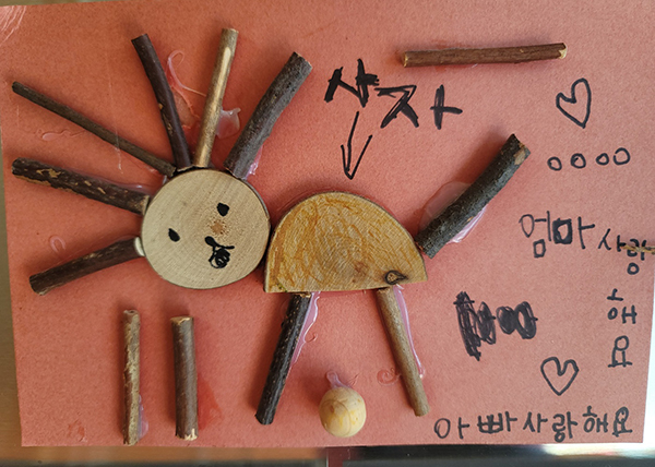 유아가 누리과정 생활 주제에 따라 나뭇조각으로 인형과 케이크 등을 만들며 자신만의 나무 이야기를 창조한다는 내용을 담았다.