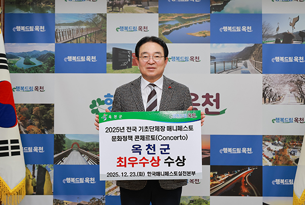 [문화투데이 황재연 기자] 충북 옥천군은 한국매니페스토실천본부가 주관한 '2025 전국기초단체장 문화정책 콘체르토'에서 황규철 군수가 최우수상(문화기반 도시활력 분야)을 수상했다고 24일 밝혔다.