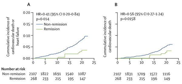 정상범위 회복 그룹과 비회복 그룹의 심혈관질환 사망과 심부전 입원 위험은 정상범위 회복 그룹이 비회복 그룹보다 미국 DPPOS에서 59%, 중국 DaQingDPOS에서 51% 낮은 것으로 분석됐다.