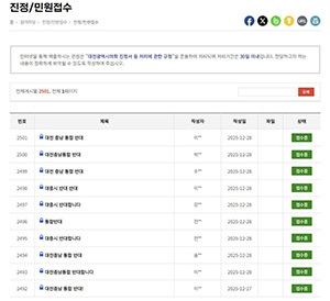 28일 대전시의회 게시판에는 지난 21일부터 접수된 통합 반대 관련 진정이 한 주 만에 430건을 넘었다.