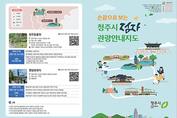이 지도는 청주의 핵심 관광지 15곳 위치 등을 담고 있다.