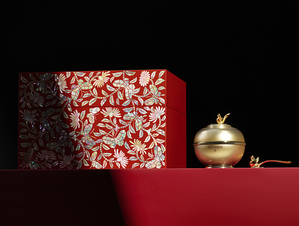 패키지는 서울시 무형유산 제1호 칠장 수곡(守谷) 손대현 장인이 만든 주칠 국화당초문 나전칠기함으로, APEC에서 선보인 국빈 세트와 동일하다.