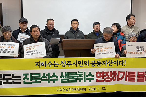 가덕면발전대책위원회 소속 주민 20여명은 12일 충북도청에서 기자회견을 열고 "하이트진로는 지난 30년간 막대한 양의 지하수를 취수하며 물장사를 해왔다"며 "이로 인해 지하수가 고갈돼 일대 개천의 물이 메마르고, 농업용수 사용을 위해 더 깊이 관정을 파야 하는 상황"이라고 주장했다.
