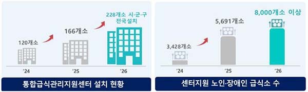 현재 어린이집, 경로당 등 센터의 지원과 관리를 받는 급식시설 이용자는 어린이·노인·장애인 등 110만 명이다. 고령인구 증가 추세에 따라 노인 등 수혜자가 작년 13만 명에서 2030년 30만 명으로 늘어날 것으로 식약처는 예상했다.