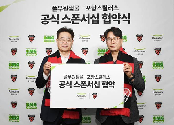 협약에 따라 풀무원샘물은 올해 10만 병 이상의 제품을 포항스틸러스에 지원한다. 후원 제품은 무라벨 풀무원샘물, 하루귀리, 브리지톡 라임 등 3종이다.