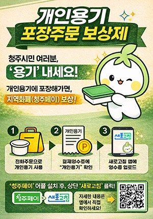 [문화투데이 황재연 기자] 청주시는 올해 '개인 용기 포장주문 보상제' 사업을 확대한다고 21일 밝혔다.