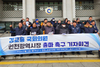 [문화투데이 황재연 기자] 인천 지역 민주 노동자 1682명이 유정복 인천시장의 시정을 ‘불통과 위법’으로 규정하고, 김교흥 국회의원(인천 서구갑)의 인천시장 선거 출마를 강력히 촉구하고 나섰다. 인천노동 사회포럼과 인천 지역 민주 노동자 1682명은 12일 오후 2시 인천시청 앞 애뜰광장에서 기자회견을 열고 “위기의 인천을 구해낼 유일한 적임자는 김교흥”이라며 김 의원의 결단을 요구했다. 이날 회견은 단순한 지지 선언을 넘어, 현직 시장의 사법 리스크를 거론하며 퇴진을 요구하는 등 높은 수위의 비판이 쏟아져 지역 정가에 파장이 예상된다. 인천 지역 노동계 인사들은 성명서를 통해 유정복 시정을 강도 높게 비판했다. 이들은 “유 시장의 지난 4년 동안 노동자들의 목소리는 철저히 외면당했고, 노사정 대화의 문은 굳게 닫혔다”며 “보여주기식 치적 쌓기에만 몰두하느라 민생과 노동은 뒷전으로 밀려났다”고 성토했다. 특히 최근 불거진 유 시장의 공직선거법 위반 의혹을 정면으로 겨냥했다. 대표단은 “현직 시장이 공무원을 동원해 관권 선거를 했다는 의혹으로 수사를 받는 초유의 사태가 발생했다며 “무능하고 부도덕한 리더십에 더 이상 300만 인천 시민을 맡길 수 없다고 목소