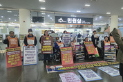 [문화투데이 장은영 기자] 전국장애인차별철폐연대, 세종장애인차별연대(세종 장차연)가 5일 세종시청에서 장애인 지원 예산 확충을 촉구하며 농성에 들어갔다. 세종 장차연 회원 10여명은 이날 오전 세종시청 1층 로비에서 기자회견을 열고 장애인 권리 보장 예산을 확대해야 한다고 주장했다. 이들은 이동권 보장을 위해 특별교통수단 운전원·운영시간 등을 확대하고, 장애인들의 단체 이동을 위한 전용 버스를 2대 이상 도입해 달라고 요구했다. 장애인 활동 지원을 24시간 보장하는 한편, 지원 기준으로 삼는 독소조항(소득기준)을 폐지해야 한다고 지적했다. 이 단체는 "세종보람장애인자립생활센터 인건비와 운영비 100%를 세종시가 보장해야 한다"며 "권리중심 중증장애인 맞춤형 공공일자리도 만들어야 한다"고 촉구했다. 이들은 요구사항이 받아들여질 때까지 세종시청 1층 민원실 앞에 텐트를 치고 농성을 이어가겠다고 밝혔다.