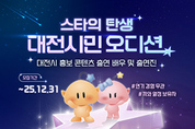 [문화투데이 장은영 기자] 대전시는 시민이 직접 참여하는 홍보 콘텐츠 제작을 위해 '스타의 탄생! 대전시민 오디션'을 연다고 16일 밝혔다. 대전 시민이나 대전에 연고가 있는 사람이라면 연기 경험이 없어도 누구나 지원할 수 있다. 연기·뮤지컬·무용·노래 등 재능 보유자는 우대하며, 서류와 영상 심사를 통해 본선 진출자 20명을 선발한 뒤 내년 2월 현장 오디션을 통해 최종 10명을 뽑는다. 선발된 10명에게는 총 500만 원의 상금이 차등 지급되며, 수상자를 포함한 결선 진출자는 대전시 홍보대사로 위촉돼 시에서 제작하는 각종 홍보 콘텐츠에 참여하게 된다. 오는 31일까지 90초 이내 자기소개와 어필 영상, 이름, 연락처를 담당자 이메일(2025djstar@gmail.com)로 제출하면 된다.