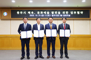 [문화투데이 황재연 기자] 충북 충주시는 31일 오전 시청 중회의실에서 국립한국교통대학교, 건국대학교 글로컬캠퍼스, 충주시체육회와 '2027년 하계세계대학경기대회' 성공 개최를 위한 업무협약을 했다. 이번 협약을 통해 각 기관은 전문 및 생활체육 활성화, 문화예술 발전 협력, 인적 인프라 및 자원 지원 등에서 힘을 모으기로 했다. 시는 이번 협약으로 체육관 대관, 자원봉사 인력, 시설 지원 등에서 기관 간 협력이 한층 강화될 것으로 기대했다. 조길형 시장은 "대학생들과 지역사회 모두가 어우러져 함께 만드는 국제 스포츠 축제가 될 수 있도록 최선을 다하겠다"고 밝혔다. 2027 하계세계대학경기대회는 대전·세종·충남·충북이 공동으로 개최하며, 대회 기간 충주에선 육상·배드민턴·태권도·조정 4개 종목이 충주종합운동장·호암체육관·충주체육관·조정경기장에서 각각 치러진다.