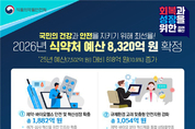 [문화투데이 황재연 기자] 식품의약품안전처는 내년도 예산을 8천320억원으로 최종 확정했다고 밝혔다. 올해보다 818억원(10.9%) 증가한 규모다. 새해 예산은 식약처 출범 이래 최대 규모로 국회의 예산안 심사 과정에서 정부안 8천122억원에서 198억원이 더해졌다. 식약처는 제약·바이오헬스 안전 및 혁신성장 기반 확충, 규제환경 고려 맞춤형 식의약 안전지원 강화, 먹거리 안전 및 건강한 식생활 환경 조성, 미래 대비 선제적 식의약 안전관리 체계 구축 등 4개 분야에 중점을 두고 예산을 편성했다. 국회에서 증액된 주요 예산은 허가·심사 혁신 인력 증원에 따른 인건비·운영비(+155억원), 희귀·필수의약품 공적공급 및 수급 이슈 대응 강화(+7억원), 허가·심사자 첨단기술 직무전문교육 고도화(+3억원) 등이다. 또 방치된 마약류 수거·폐기 사업 확대(+2억원), 사법-치료-재활 연계 참여조건부 기소유예 운영(+2억원), CODEX 의장국 활동 수행비(+4억원), 음식점 위생등급제 확대 운영(+5억원), 통합급식관리지원센터 확대(+10억원) 등 관련 예산도 증액됐다. 구체적으로 보면 식약처는 바이오헬스 전 분야의 허가·심사 기간을 세계 최단 기간인 240일로