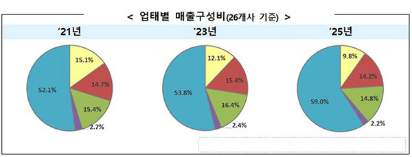 이로 인해 오프라인 부문 매출 비중은 2021년 52.1%에서 지난해 59.0%로 최근 5년간 7%포인트 가까이 확대됐다.