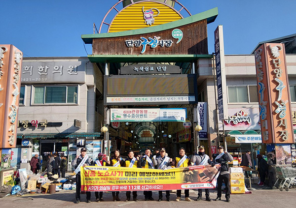 구경시장 주요 지점에서 현수막을 활용한 거리 홍보를 하고, 소상공인들에게 예방 홍보 전단 300장도 배부했다.