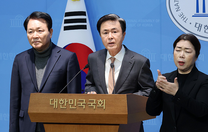 김영환 충북도지사·이양섭 충북도의회 의장·국민의힘 박덕흠 의원(충북 보은·옥천·영동·괴산)도 국회에서 기자회견을 열어 충남·대전 행정통합 논의에서 충북이 소외되고 있다고 주장했다.