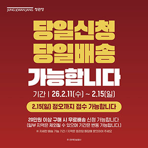 [문화투데이 구재숙 기자] 정관장은 설 연휴를 앞두고 당일배송 서비스를 오는 15일 정오까지 운영한다고 11일 밝혔다.