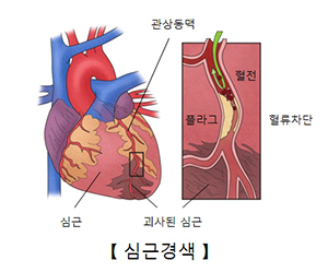 심근경색은 심장에 혈액을 공급하는 관상동맥이 혈전(피 덩어리) 등 여러 원인으로 막혀 산소 공급을 받지 못한 심장 근육이 괴사하는 질환이다.