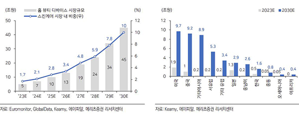 특히 미국 시장은 2023년 1조9천억원에서 2030년 9조7천억원으로 뷰티 디바이스의 핵심 무대가 될 것으로 보인다.