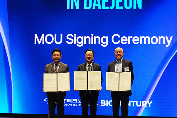 전날 대전시와 대전TP, 글로벌 바이오 전문 미디어 '바이오센추리'는 대전 바이오 생태계의 국제 경쟁력 강화를 위한 업무협약(MOU)을 하고 대전 바이오기업의 글로벌 홍보 및 투자 네트워크 연계, 해외시장 진출 및 기술 협력 확대, 글로벌 파트너십 기반 공동 프로그램 운영 등을 추진하기로 했다.