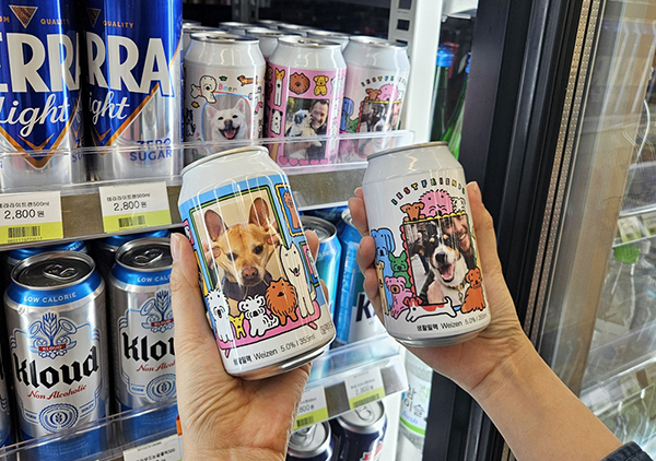 강아지 커스텀 맥주는 원하는 라벨 디자인을 선택하고서 반려견 사진을 제출하면 해당 이미지가 맥주 캔 라벨에 반영되는 상품이다. 스티커도 동봉돼 소비자 취향에 맞는 '맥꾸'(맥주 꾸미기)를 즐길 수 있다.