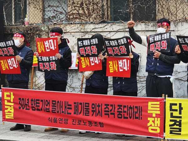 양사는 이날 청주시청 앞에서 공동 집회를 열고 현도산단 내 재활용선별센터 건립 공사에 대해 식품 안전 저해 가능성과 법적 절차 미준수, 근로자 건강권 침해 등을 이유로 강하게 반대한다는 뜻을 밝혔다.