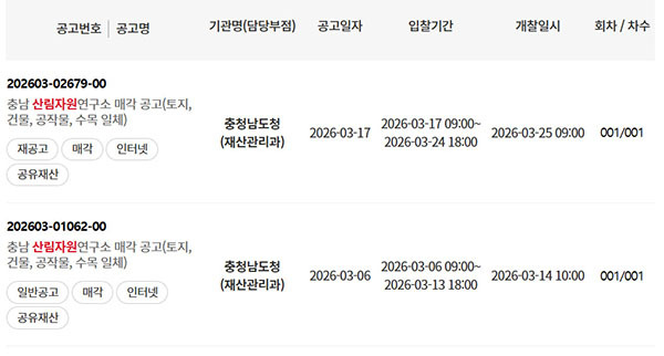 충남도 재산관리과는 이달 초 자산관리공사 전자자산처분시스템(온비드) 매각 물건 목록에 산림자원연구소를 등재했다.