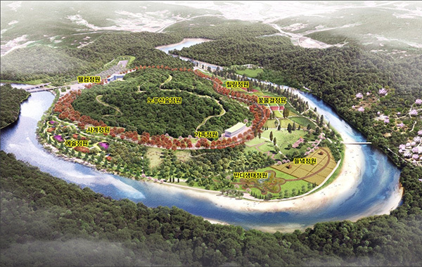구봉산 아래 노루벌 풍경을 담아 9가지 주제의 정원을 만들 계획으로 정원문화센터, 작가섬 정원, 꽃물결 언덕, 생태학습관 등을 담은 산림형 자연생태정원으로 추진된다.
