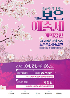[문화투데이 황재연 기자] 충북 보은예총은 21∼26일 보은문화예술회관에서 '제5회 보은예술제'를 연다고 21일 밝혔다.