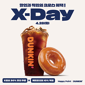던킨 관계자는 “고객분들께 더 큰 혜택을 제공하기 위해 할인과 적립을 결합한 ‘X-DAY’를 기획했다. 단 하루 동안 진행되는 이번 프로모션과 함께 던킨의 인기 콤보 제품을 즐겨보시길 바란다”고 말했다.