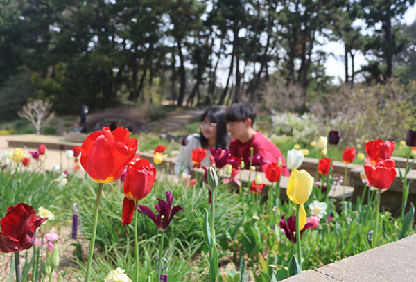 29일 천리포수목원에 따르면 청벚나무와 겹벚꽃에 태안의 봄을 상징하는 튤립까지 화려한 봄꽃들이 탐방객들의 발걸음을 멈추게 하고 있다.