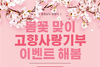 [문화투데이 장은영 기자] 충남 보령시는 오는 8일까지 '봄꽃 맞이 고향사랑기부 이벤트 해봄'을 진행한다고 6일 밝혔다. 이 기간 보령시에 10만원을 기부하면 전액 세액공제와 3만원 상당 답례품을 받을 수 있다. 여기에 5천원 상당의 커피쿠폰, 위기브 제휴링크를 통해 기부할 경우 GS25 상품권 1만5천원권, 100의 배수 순번 기부자에게는 보령사랑상품권 3만원이 추가 지급된다. 시 관계자는 "봄꽃 축제 시즌을 맞아 더 많은 분이 고향사랑기부제에 참여할 수 있도록 다양한 혜택을 마련했다"며 "기부금은 지역 발전과 시민 복지를 위해 소중히 사용하겠다"고 말했다.