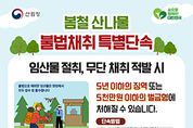 [문화투데이 장은영 기자] 산림청은 5월 말까지 '봄철 산림 내 불법행위 집중단속'을 한다고 22일 밝혔다. 산림청 소속 지방산림청, 국유림관리소, 지방정부가 합동으로 인터넷 및 동호회를 통한 산행 모임의 관행적 임산물 불법 채취를 집중적으로 점검한다. 산림사법경찰이 현장에서 드론을 활용해 입체적으로 단속할 예정으로, 위법행위가 적발되면 사소한 위반 사항이라도 무관용 원칙으로 엄중 조치할 방침이다. 산주 허가 없이 임산물을 절취하거나 무단으로 채취하다 적발될 경우 5년 이하의 징역 또는 5천만원 이하의 벌금에 처할 수 있다. 불법으로 채취한 임산물은 현장에서 모두 압수 및 몰수된다. 박영환 산림환경보호과장은 "드론 등 첨단 장비를 활용하면서 단속망이 촘촘해졌다"며 "무심코 행하는 산나물 채취도 무거운 처벌을 받을 수 있는 만큼 소중한 산림자원 보호를 위해 협조해달라"고 당부했다.