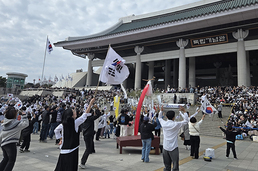 [문화투데이 장은영 기자] 독립기념관은 제107주년 3·1절인 1일 겨레의 큰마당 등 곳곳에서 문화행사 '1919 그날의 함성'을 개최했다. 낮 12시부터 겨레의 큰마당에서 펼쳐진 '만세운동 퍼포먼스'에는 사전 신청을 받아 선정한 명예 독립운동가 1천919명이 극단 우금치와 함께 107년 전의 만세운동을 재현하며 압도적인 현장감을 선사했다. 라라앙상블의 음악 공연, 점핑엔젤스의 독립선언 퍼포먼스, 천안시립풍물단의 풍물놀이, 육군 의장대와 태권도시범대의 역동적인 공연이 이어졌다. 올해는 백범 김구 선생 탄생 150주년을 기념해 독립기념관 소장 국가등록문화유산인 '백범 김구 서명문 태극기'를 모티브로 한 특별 굿즈를 선보였다. 담요와 엽서로 구성된 기념품 패키지는 행사에 참여한 1천919명의 명예 독립운동가에게 수여됐다. 기념관을 찾은 관람객들은 태극기 에코백·바람개비 만들기, 무궁화 팔찌 만들기 등 독립운동 테마 체험에 참여했다. 인공지능(AI) 디지털 휴먼을 활용한 독립 퀴즈존과 데시벨 측정기를 이용한 '대한독립만세' 외침 이벤트 등 이색적인 참여 프로그램도 열렸다.