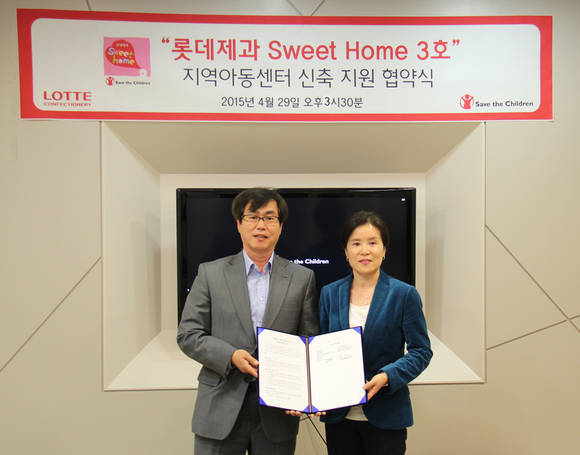 롯데제과가 지역아동센터 ‘롯데제과 스위트홈(Sweet Home)’ 3호점을 건립한다. 이를 위해 롯데제과(대표이사 김용수)는 국제구호개발 NGO 세이브더칠드런(사무총장 김미셸)과 4월 29일 서울 마포구에 위치한 세이브더칠드런 법인에서 신축지원협약식을 가졌다.