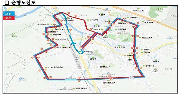 [문화투데이 황재연 기자] 충북 옥천군은 내달부터 옥천읍 시가지의 아파트단지와 학교, 관공서, 체육시설 등을 연결하는 순환버스를 운행한다고 22일 밝혔다.