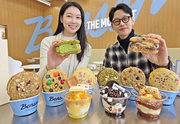 [문화투데이 구재숙 기자] 한화갤러리아 자회사 베러스쿱크리머리가 운영하는 아이스크림 브랜드 벤슨은 아이스크림을 색다르게 즐길 수 있는 신제품 쿠키샌드·썬데를 새롭게 선보인다고 26일 밝혔다.