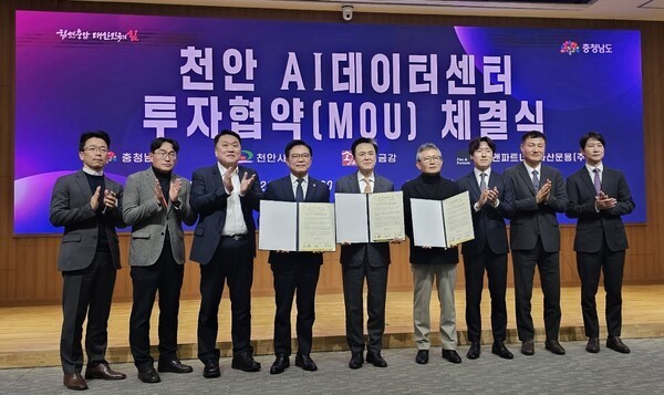 충남도와 천안시는 29일 부동산 및 데이터센터 개발 전문 기업인 금강과 '천안 AI 데이터센터 투자협약 체결식'을 열었다.