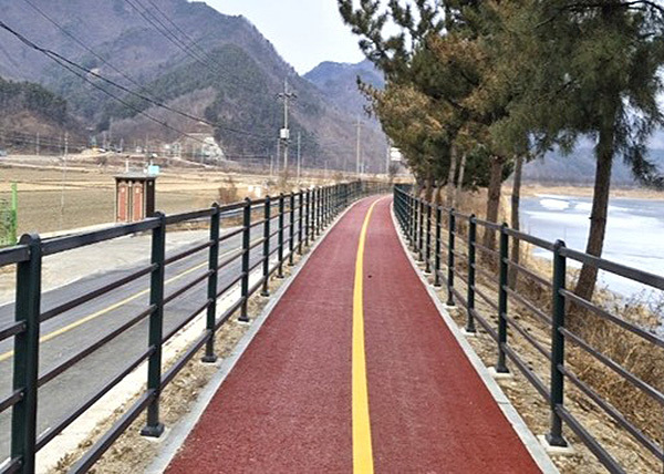 이 도로는 청산면 지전∼하서리(3㎞) 자전거도로와 연결돼 6.7㎞의 라이딩 코스를 구축하게 됐다.