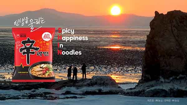 광고 말미에는 신라면의 글로벌 브랜드 슬로건 'Spicy Happiness In Noodles'(SHIN·라면에 담긴 매콤한 행복)를 넣어, 세계적으로 인기를 얻고 있는 신라면의 위상도 반영했다고 농심 측은 설명했다.