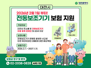 대전시에 주소를 둔 등록장애인 중 전동휠체어 또는 전동스쿠터 이용자는 별도의 신청 절차 없이 내달 1일부터 자동 가입되며, 보험료는 전액 대전시가 부담한다.