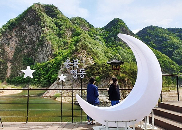 민주지산 기슭인 월류봉(높이 400m)은 굽이쳐 흐르는 초강천 물줄기와 어우러진 경관이 장관을 이뤄 한 해 40만명 이상이 찾는 곳이다.
