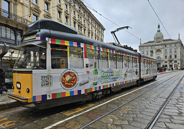 이번 홍보는 지난달부터 이달까지 두 달간 예정으로 밀라노 트램 외관을 김치와 비빔밥 등 K푸드 12종으로 디자인한 광고로 시작됐다.