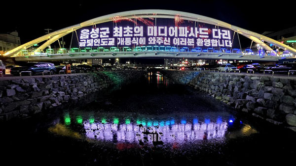 군은 금왕읍 농촌중심지 활성화 사업의 하나로 총 32억1천800여만원을 들여 이 인도교를 조성했다.